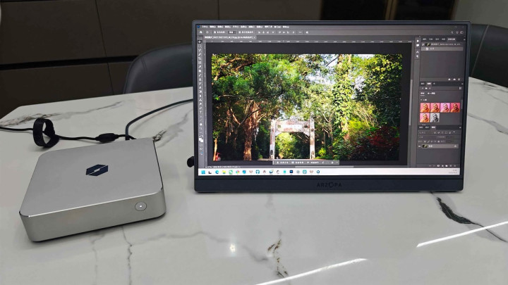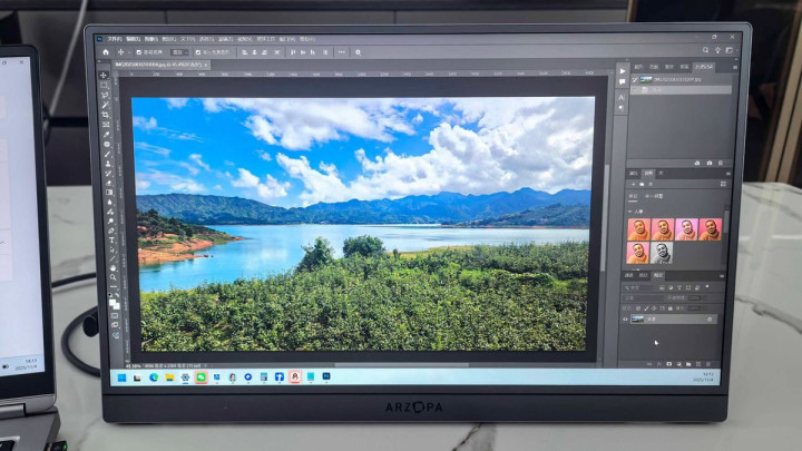 上周帮同事修图,导入一张风景照到PS里,阴影里的树叶纹理、天空的渐变色层次,在ARZOPA Z3FC上看得清清楚楚,调参数时也不用瞎猜——当年DIY屏偏色严重,明明是蓝色的天空,调完变成青色,现在100% sRGB色域真不是吹的,修完导出的图和手机里看的没差别。