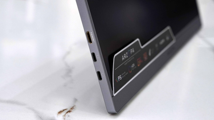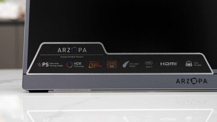 ARZOPA Z3FC便携屏的机身是全铝合金机身摸起来冰凉细腻,不像当年DIY屏的亚克力壳,夏天出汗会粘手,冬天摸起来像塑料板。出厂的贴纸已经将卖点都罗列出来了,村民其实看这张图就知道要不要上车:IPS屏幕、支持HDR、180Hz高刷、2.5K分辨率、780g超轻机身、Type-C一线通,Mini HDMI输入等。