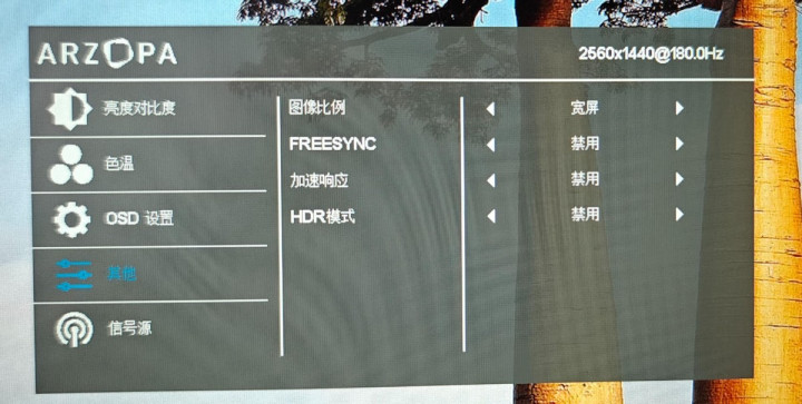 OSD的UI做得是一般,不过功能是该有的都有包括3色色温,Freesync,加速相应,HDR模式。