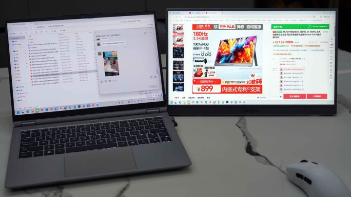 村民的这台机械革命830Pro买了快一年,之前接27寸桌面屏,放书房里动不了,现在配ARZOPA Z3FC便携屏,直接把“工作站”挪到了客厅茶几上,周末边晒太阳边处理工作,比闷在书房舒服多了。