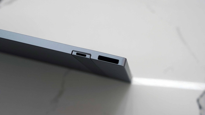 9.3mm的厚度比我手机(华为Mate60 Pro)基本一样,塞进通勤包的侧袋里,完全不鼓包,当年那台DIY屏得专门用个电脑包,现在出门带它跟带本书似的。